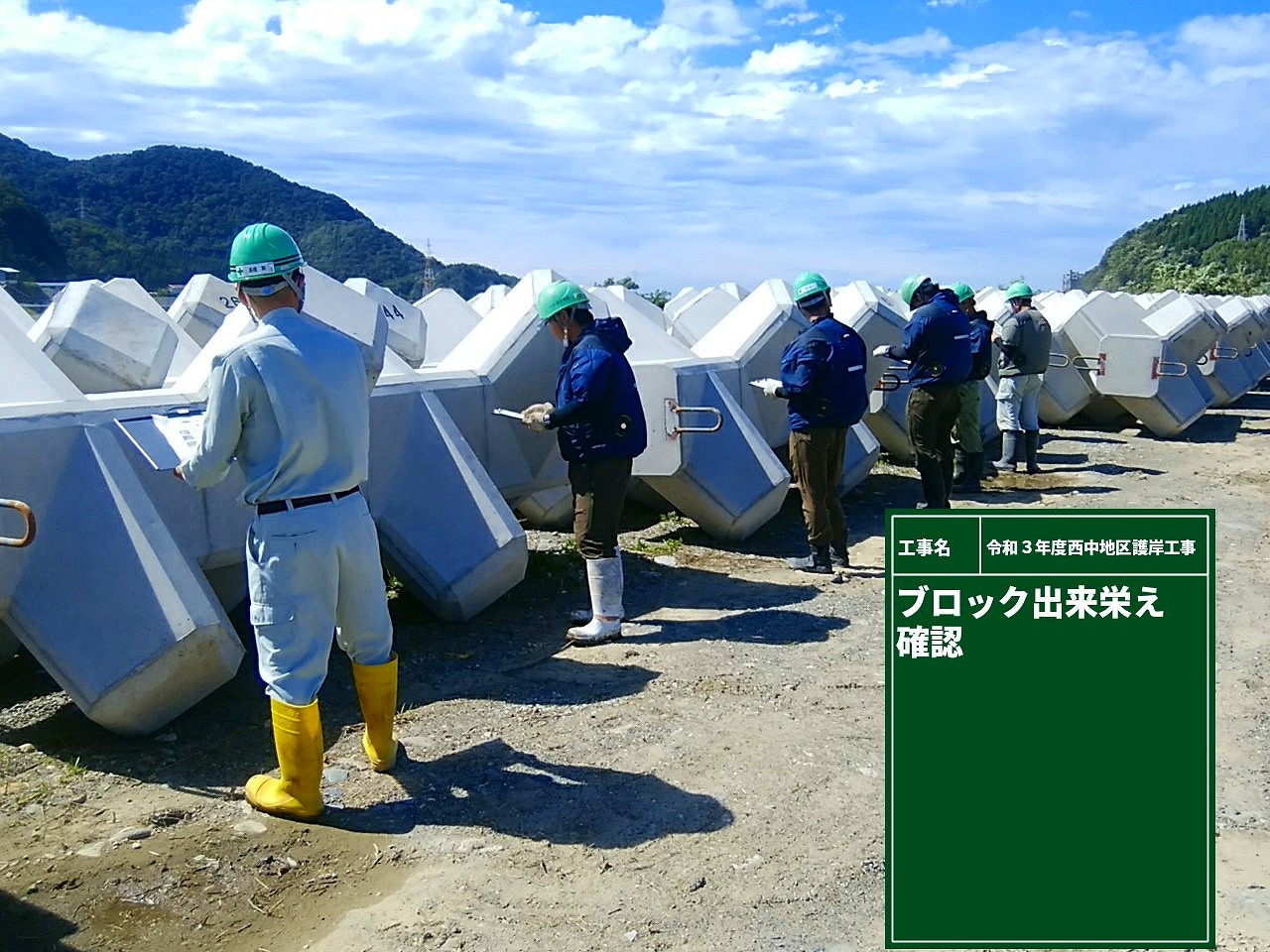 作業員全員でブロックの出来栄えを確認し、意見交換を行い、品質向上に努めています。