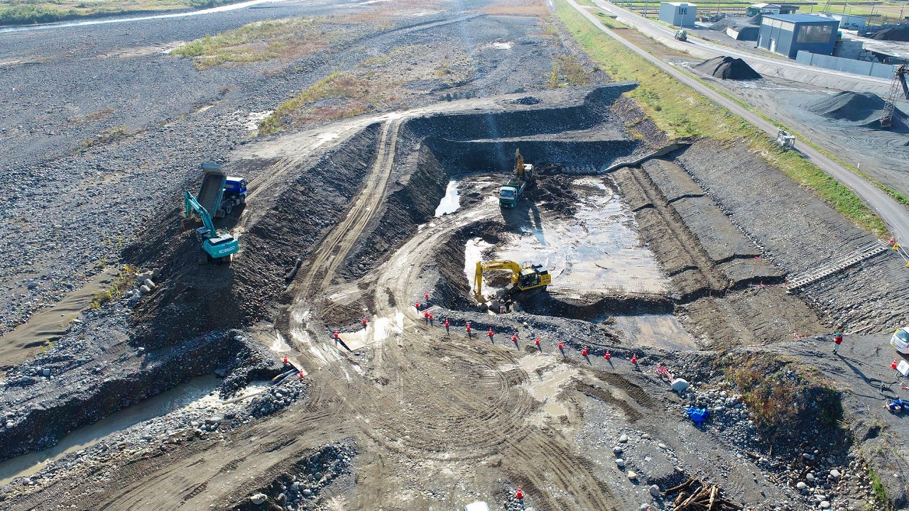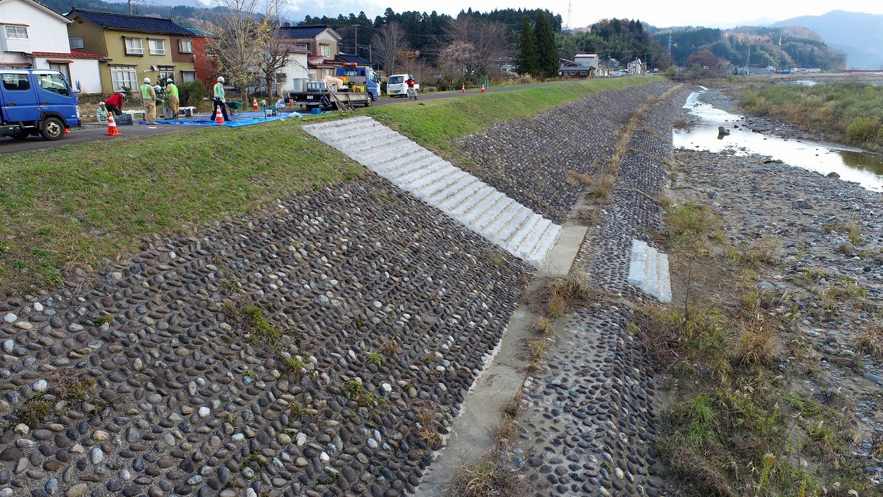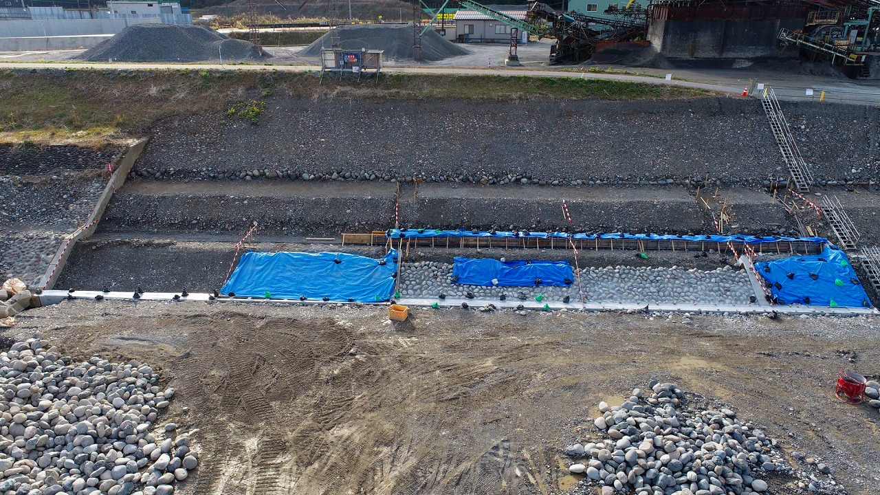 残りの施工は石張工の上段と埋戻しとなり、完成が近づいてきました。